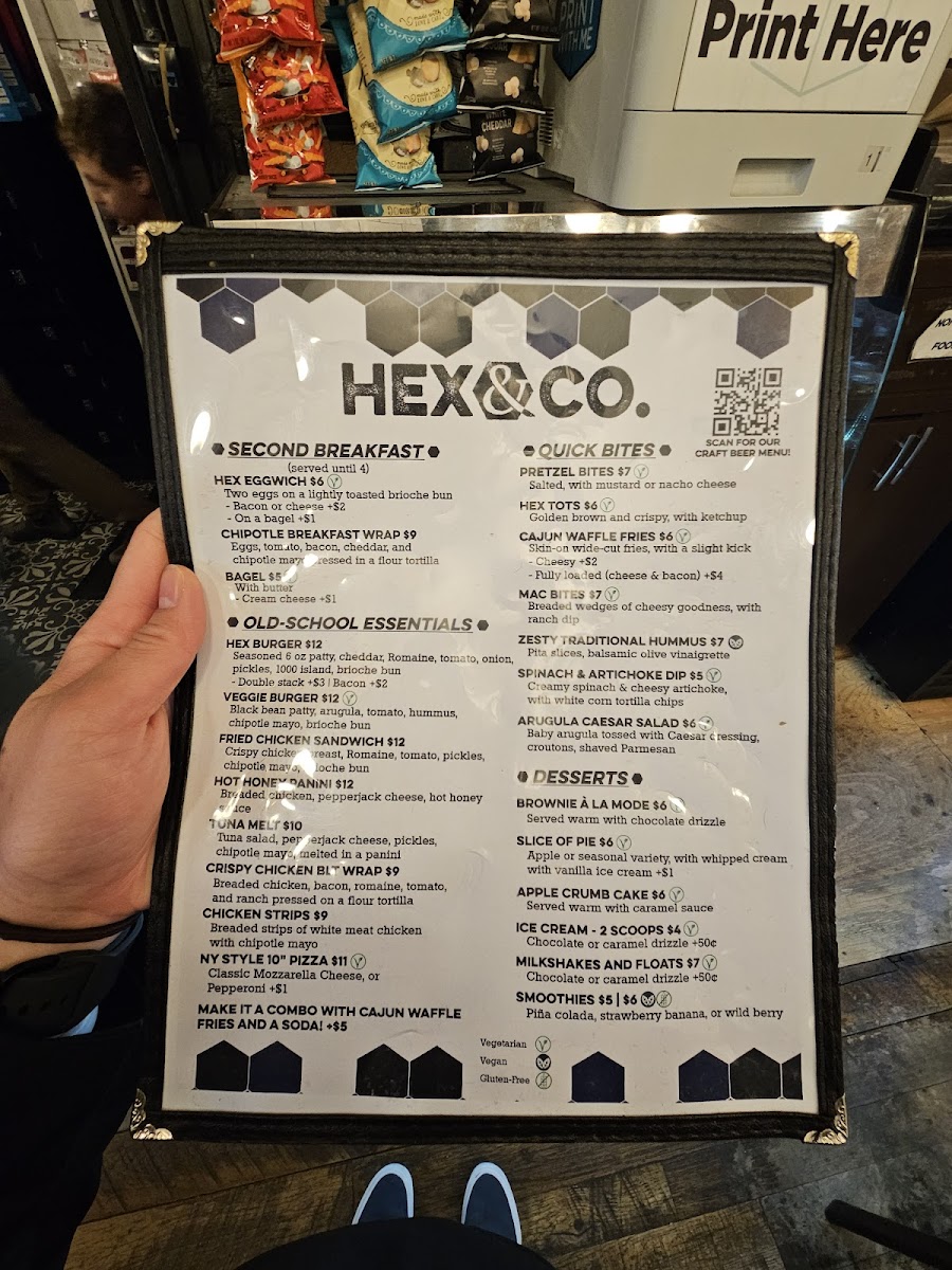Welcome to Hex & Company, a captivating board game café nestled on Broadway in New York City. This innovative venue seamlessly blends tabletop gaming with a cozy dining experience. The menu features delightful offerings like crispy O.G. TOTS and indulgent Coal Oven Pizza, perfect for sharing during game night. Don't miss the delectable Brownie À La Mode, a warm treat drizzled with chocolate that rounds off your meal beautifully.
